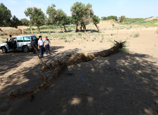 2012年7月于内蒙古额齐纳旗征集胡杨木标本。